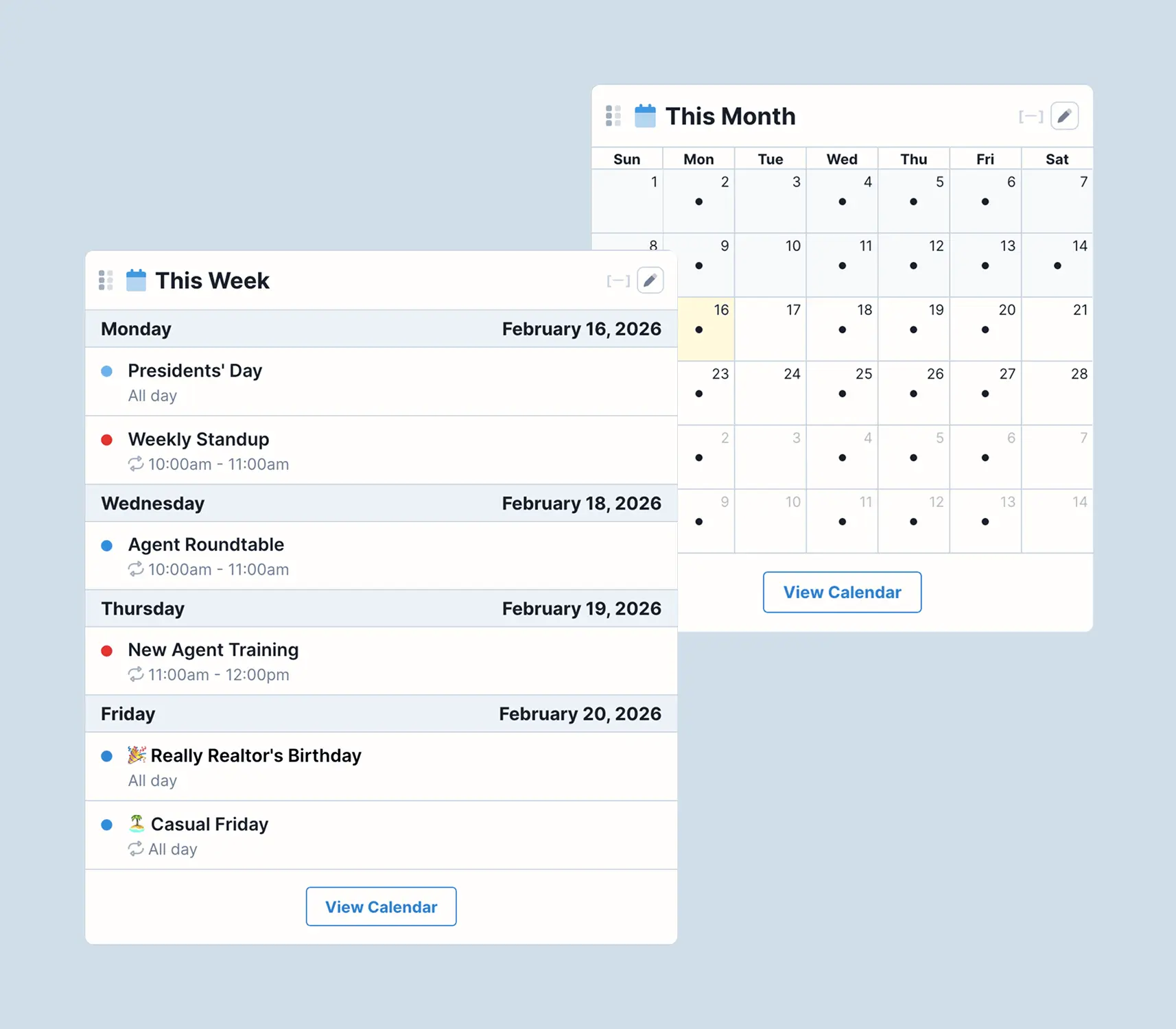 A dependable calendar makes coordination simple. Agents can plan ahead with confidence, and managers can keep key dates visible to the right people.