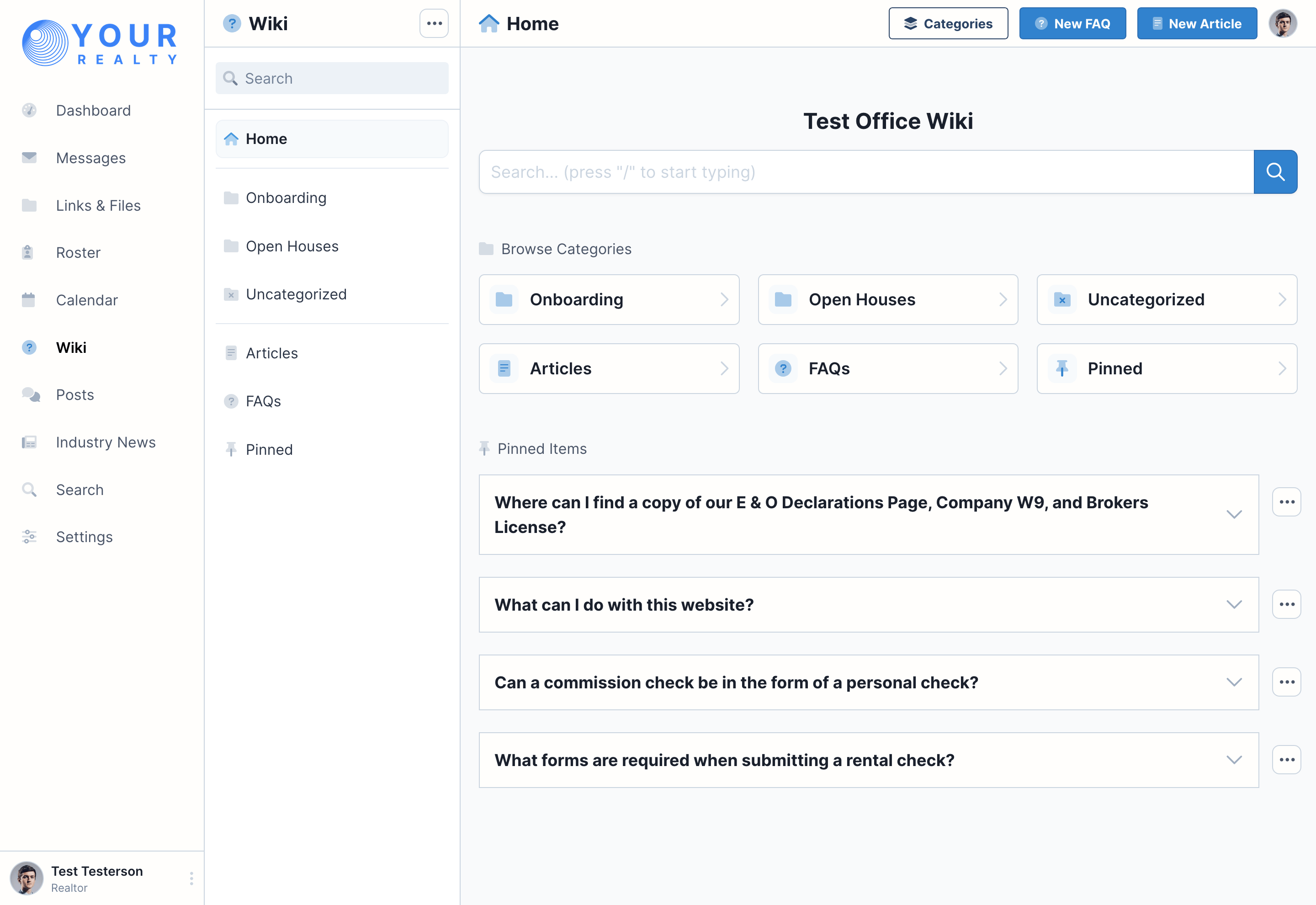 The Wiki is a centralized knowledge base that grows with your team. Create quick FAQs for common questions and Articles for detailed topics, all organized in one searchable place. Pin essential information to the dashboard, categorize content for easy navigation, and give your agents instant access to the answers they need.